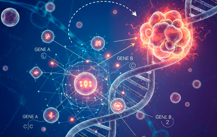 Um dos mecanismos mais estudados na origem do câncer é a presença de conjuntos de mutações capazes de alterar o equilíbrio entre proliferação e morte celular. A proliferação celular é bem caracterizada em células-tronco, células embrionárias e células desdiferenciadas. No câncer, esse estado de desdiferenciação é explorado de forma a contribuir para evitar a vigilância imunológica, resistir a tratamentos e avançar na progressão tumoral [1]. Genes com potencial para influenciar o processo de formação do câncer são conhecidos como condutores, geralmente se encaixando em subclasses de oncogenes ou de supressores de tumores.